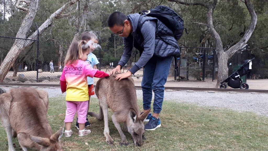 コアラをだっこしたりカンガルーに餌付けをしたりして